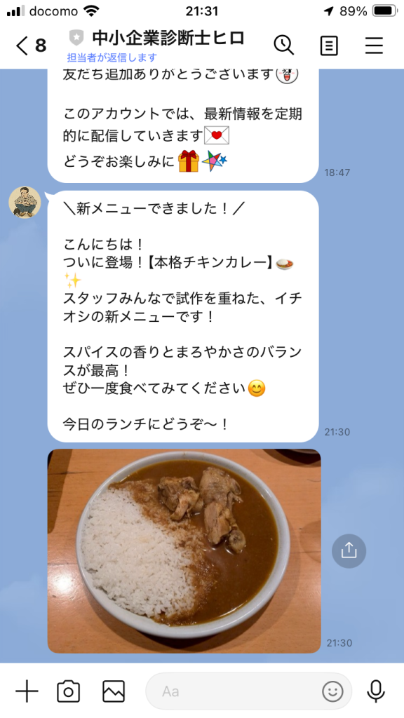 「本日のお昼のメニュー」や「今週の予約状況」などを配信して、常連客との接点をキープ。